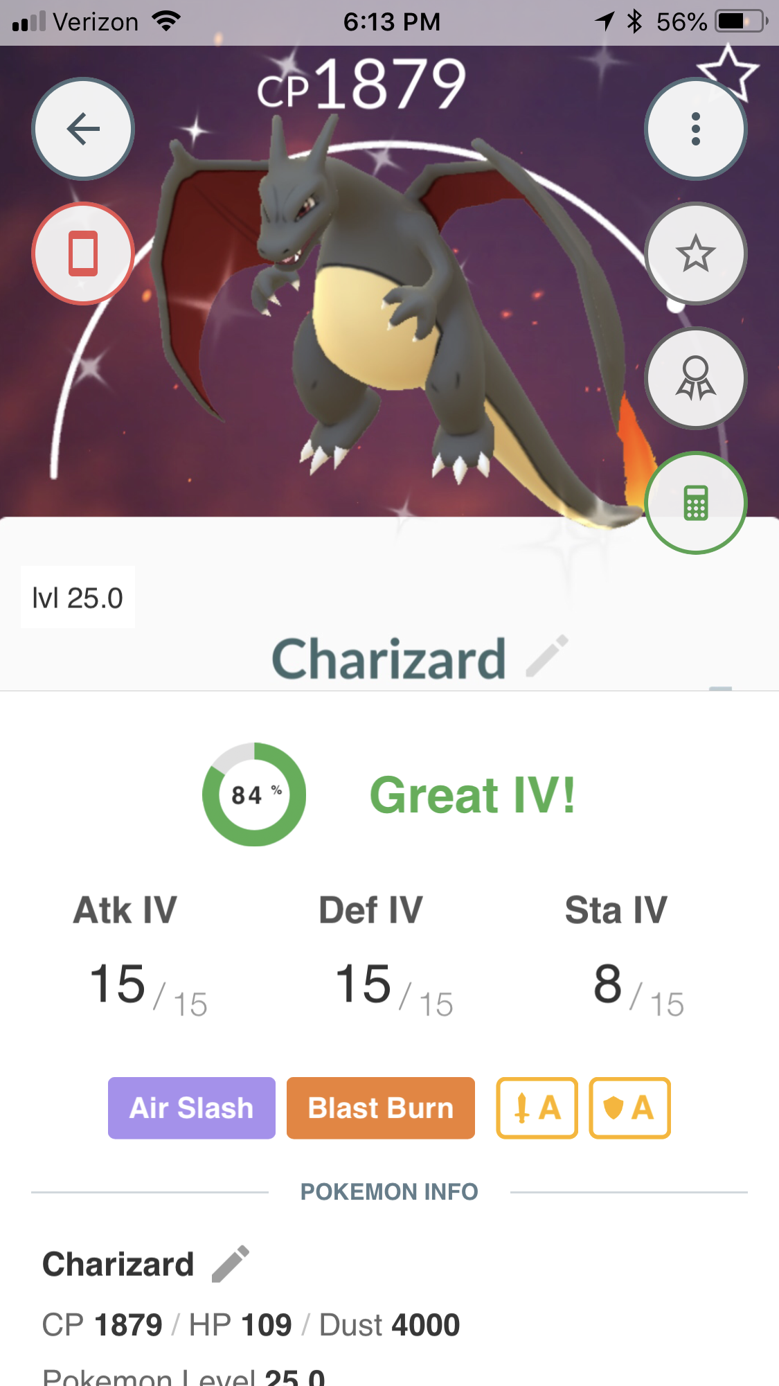 Was at Pokémon Go community day, got myself a IV 84 Shiny Charizard, near max CP.