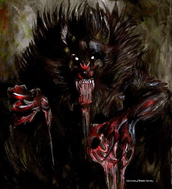 Choas erupts in the room - mad howls, viscious screams, panic ridden yelling and the sounds of flesh shredding and blood splattering across the floor all join together to create a symphony of terror.
