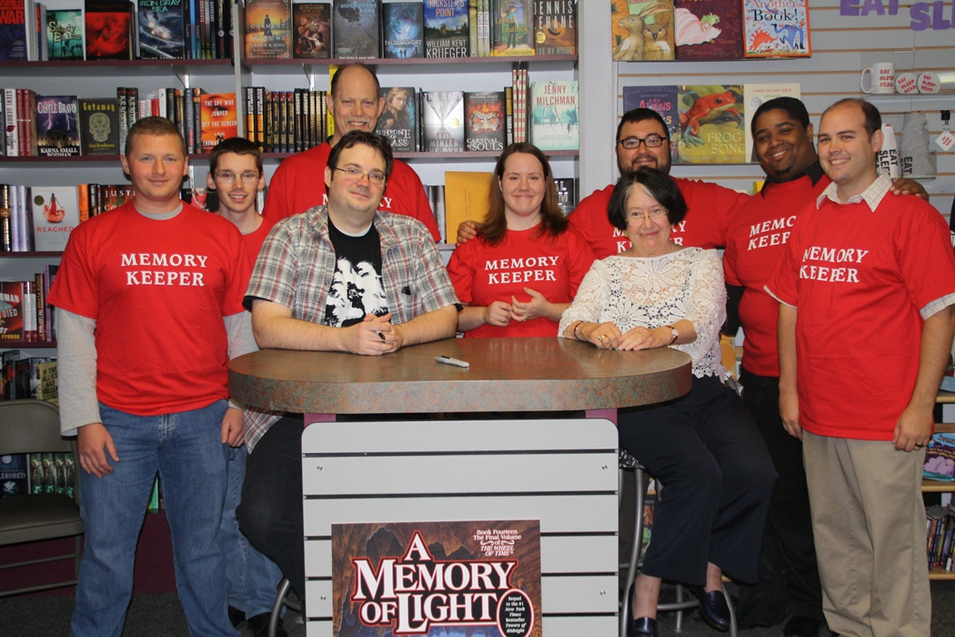 A Memory of Light book tour visit to Mysterious Galaxy in San Diego, featuring Brandon Sanderson and Harriet MacDougal